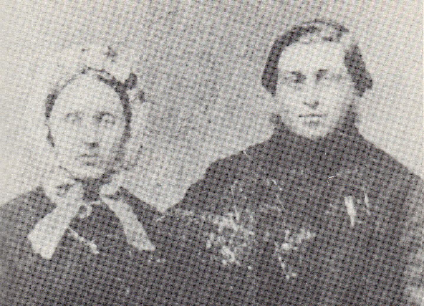 Pictures show Else Kirstine og Jens Christian Graversen at their marriage in 1865.